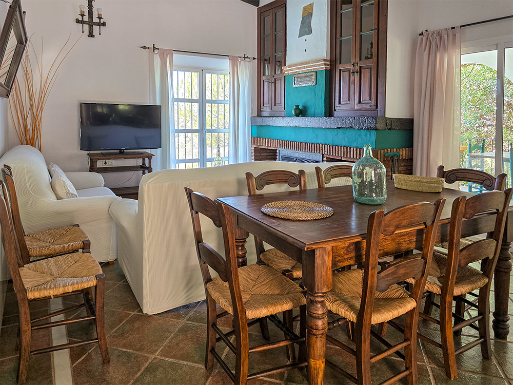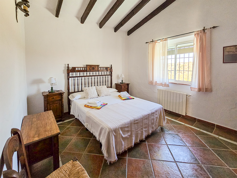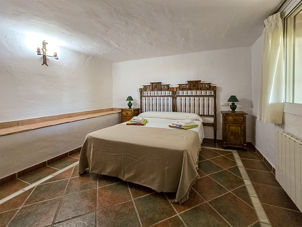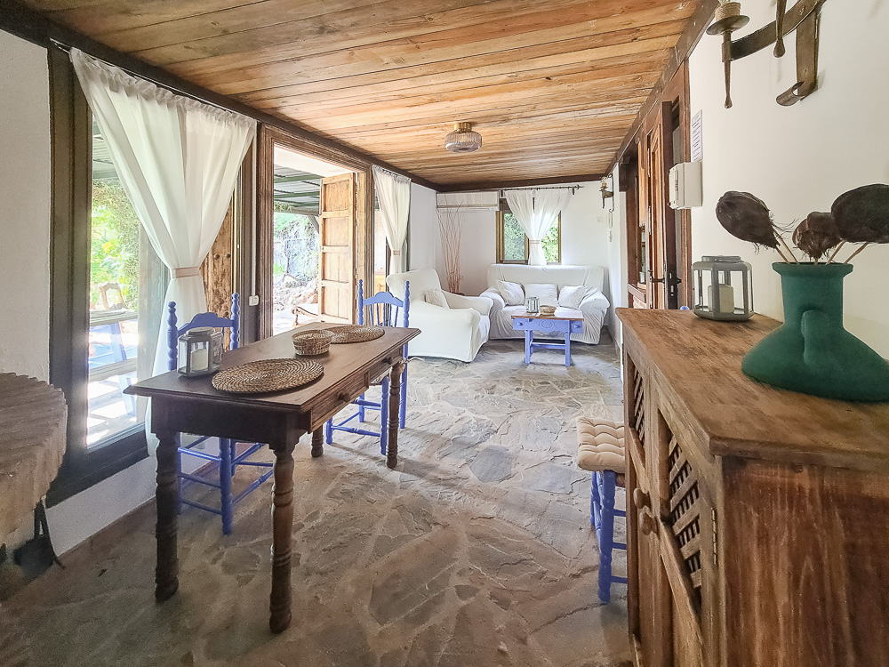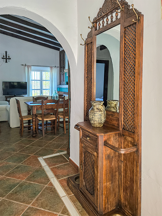 La belleza de ALAKRAN no se limita solo a sus vistas impresionantes. Esta casa rural ha sido construida con atención a cada detalle, presentando techos de vigas de madera y suelos de terracota y mármol. El mobiliario en madera maciza y la decoración de estilo rústico andaluz te envuelven en un ambiente acogedor y auténtico.