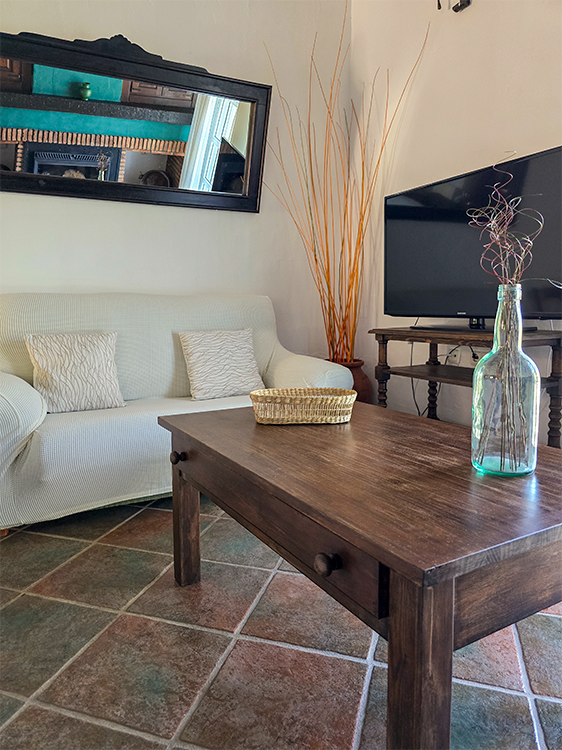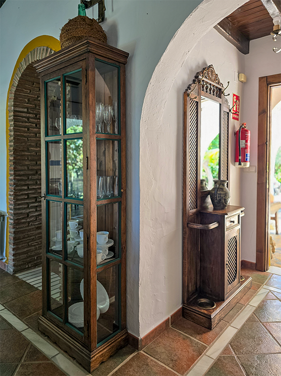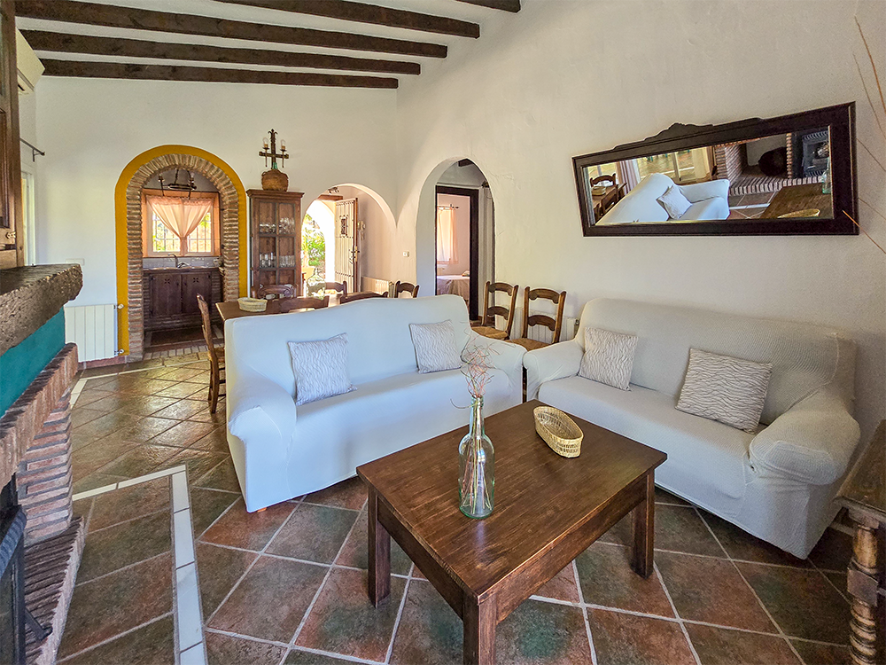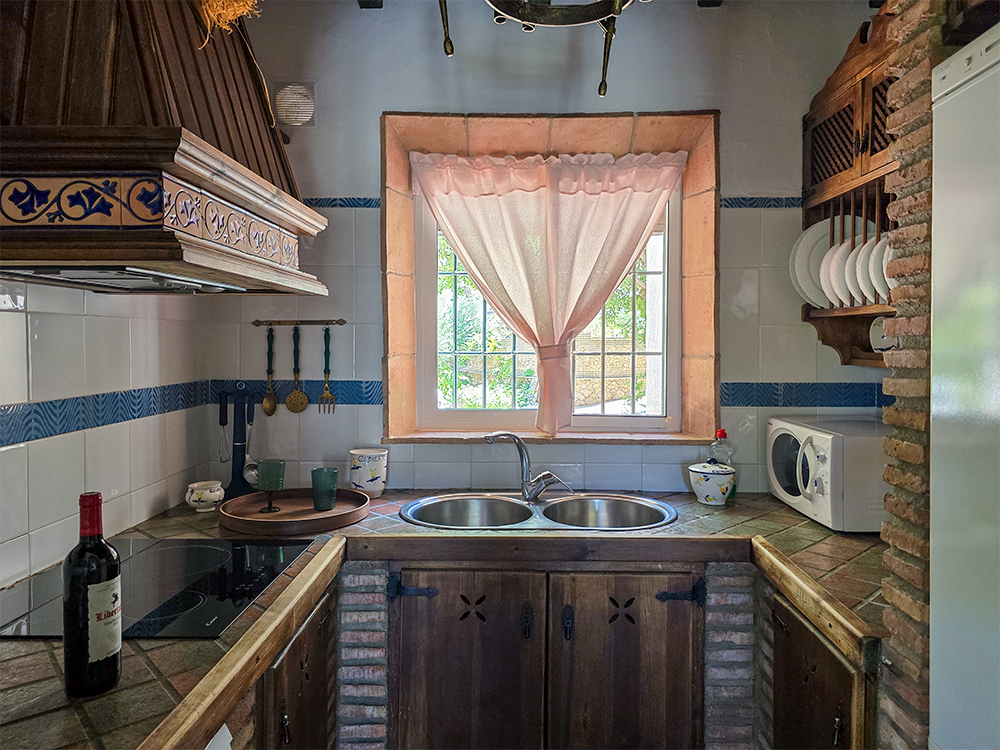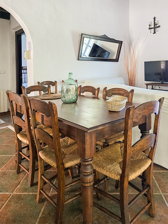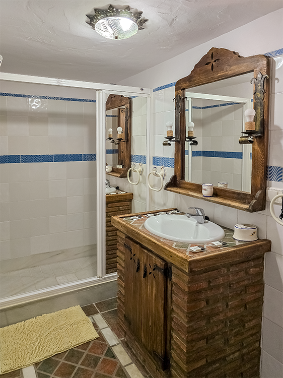 La belleza de ALAKRAN no se limita solo a sus vistas impresionantes. Esta casa rural ha sido construida con atención a cada detalle, presentando techos de vigas de madera y suelos de terracota y mármol. El mobiliario en madera maciza y la decoración de estilo rústico andaluz te envuelven en un ambiente acogedor y auténtico.