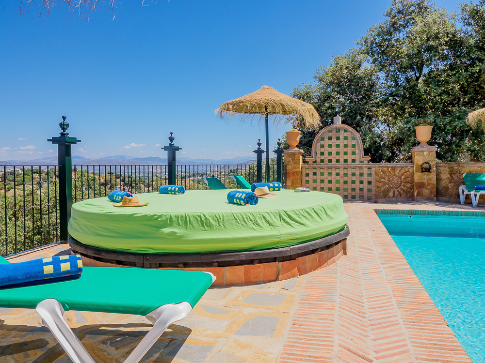 La Acequia cuenta con acceso independiente y aparcamiento privado para varios vehículos. Comparte una gran piscina con las villas Almendro y Alakran, donde tendrás tumbonas y sombrillas reservadas exclusivamente para tu familia durante toda tu estancia. Además, podrás explorar los jardines, el parque infantil, y una zona wifi situada junto al estanque de peces y patos.