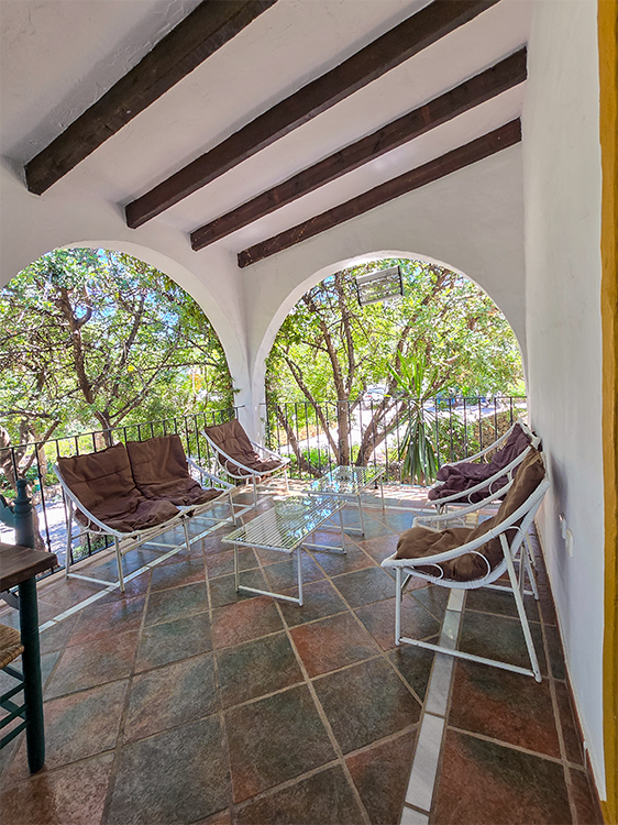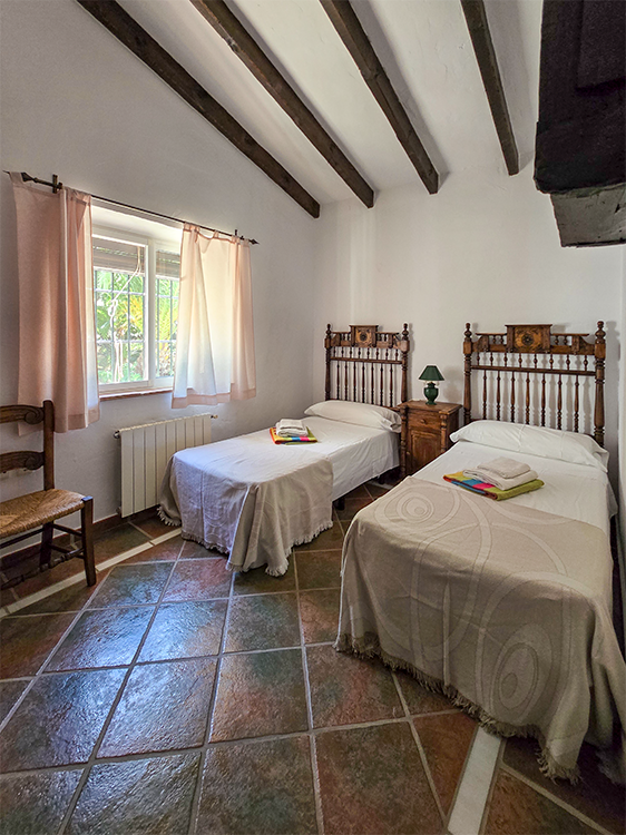 La villa está diseñada en dos plantas, con acceso independiente entre ambas, conectado por una escalera exterior. Con techos de vigas de madera y suelos de terracota y mármol, La Acequia combina elegancia rústica con todas las comodidades modernas. La planta alta ofrece una terraza descubierta ideal para disfrutar de comidas al aire libre, mientras que la planta baja cuenta con una terraza cubierta con cama balinesa, perfecta para relajarse y disfrutar de las vistas al valle, río y montañas.